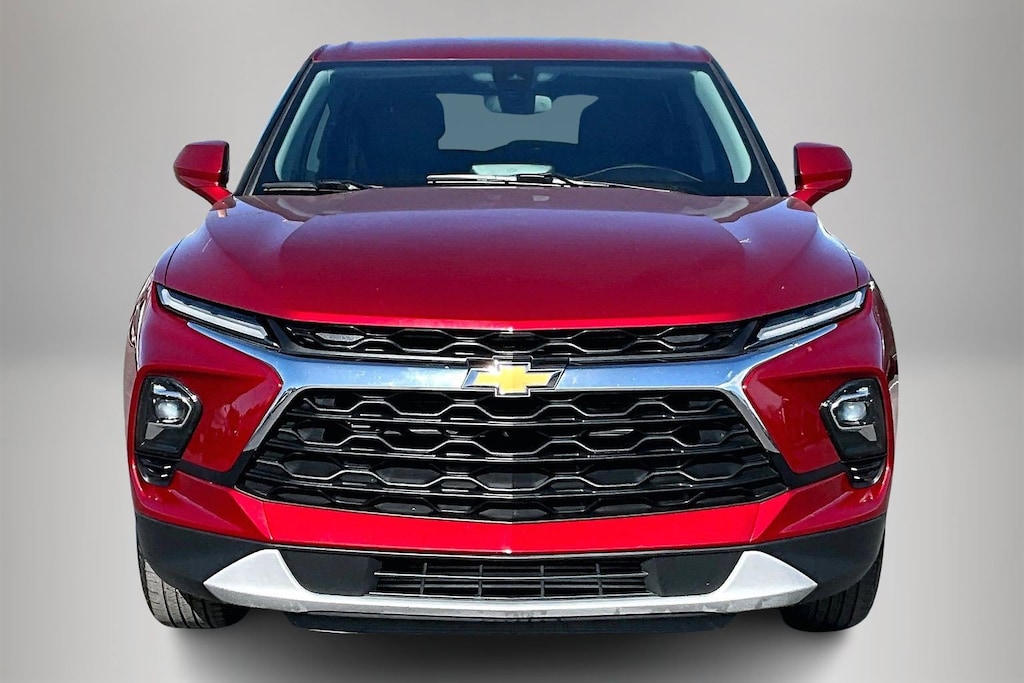 Experience the dynamic style and performance of the Red 2023 Chevrolet Blazer LT 2LT SUV. Powered by a 2.0L Turbo I4 engine and 9-speed automatic transmission, this Blazer delivers both power and efficiency. Enjoy advanced tech like wireless Apple CarPlay and Android Auto, a 10.2-inch touchscreen, Bluetooth connectivity, and built-in Amazon Alexa compatibility. Safety is front and center with features such as Front Automatic Emergency Braking, Lane Keeping Assist, Pedestrian Detection, a rearview camera, and multiple airbags. Comfort and convenience are enhanced with automatic climate control, remote engine start, heated side mirrors, push-button start, and power-adjustable driver's seat with lumbar support. Stay connected with OnStar, Wi-Fi hotspot capability, and numerous USB/USB-C outlets. The Blazer's bold exterior features LED headlights and taillights, body-color accents, and sporty chrome exhaust tips. This SUV blends modern technology, safety, and comfort, making it the ideal choice for your next adventure. Melloy Chevrolet 1-505-8663000 2023 J.D. Power and Associates Initial Quality Study (IQS): Top Models, 2023 Strategic Vision Total Quality Impact Winners Federal Emissions Requirements, Front License Plate Bracket