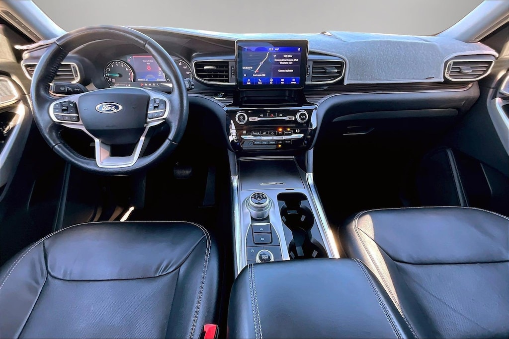 Experience refined comfort and advanced technology in this Blue 2021 Ford Explorer AWD Limited. Powered by a responsive EcoBoost 2.3L Turbo I4 engine paired with a 10-speed shiftable automatic, this SUV delivers both performance and efficiency. All-wheel drive ensures confidence in any weather, while luxury touches like leather-trimmed upholstery, heated and ventilated front seats, and a heated steering wheel elevate every drive. Stay connected and entertained with SYNC infotainment, an 8-inch touchscreen, Apple CarPlay, Android Auto, Bang & Olufsen premium sound, and Amazon Alexa integration. Safety is front and center with features such as Front Automatic Emergency Braking, Adaptive Cruise Control with Stop & Go, Blind Spot Monitoring, Lane Keeping Assist, Rear Cross Traffic Alert, Surround View Camera, and Pedestrian Detection. Convenience abounds with a power liftgate, dual-panel moonroof, FordPass Connect with smart device compatibility, and power-folding third-row seating. If you're looking for a versatile, family-friendly SUV with upscale amenities and the latest tech, this Explorer Limited is ready for you. Schedule your test drive today! Melloy Chevrolet 1-505-8663000 2021 Insurance Institute for Highway Safety Top Safety Pick+ - Midsize SUVs Dual Panel Moonroof, Equipment Group 301A, Front License Plate Bracket