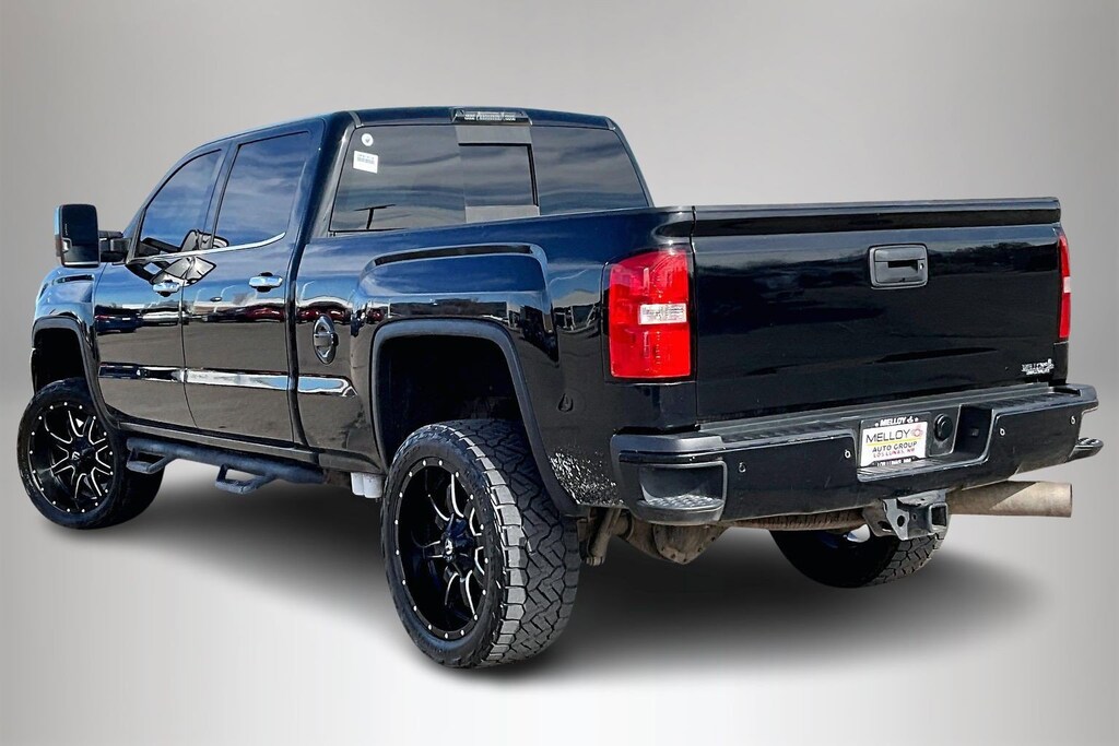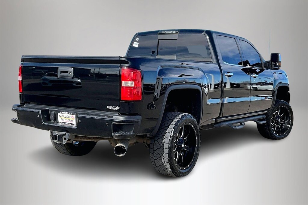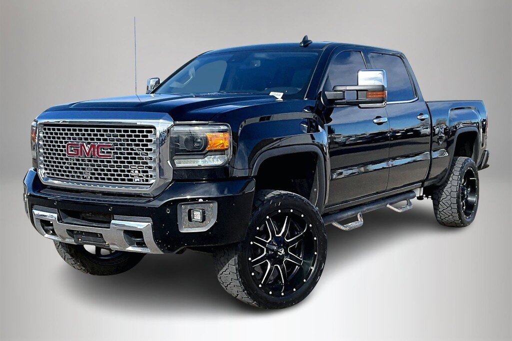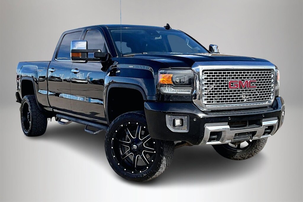 Experience premium power and capability with this Black 2015 GMC Sierra 2500HD Denali Crew Cab 4x4. Under the hood is the legendary Duramax 6.6L Diesel Turbo V8 paired with the Allison 1000 6-speed automatic, perfect for heavy hauling and off-road adventures. Enjoy advanced towing features such as the Integrated Trailer Brake Controller, Trailer Hitch, 7-pin and 4-pin wiring, and Off-Road Suspension Package. The Denali luxury shines through with leather-trimmed, heated and cooled front seats, a heated steering wheel, and power-adjustable pedals. Stay connected and entertained with the 8-inch IntelliLink infotainment system, touch screen navigation, Bose premium audio, Bluetooth, Pandora, SiriusXM, and built-in Wi-Fi hotspot. Safety and convenience features include front and rear parking sensors, rearview camera, power-folding mirrors, remote engine start, and OnStar. Distinctive 20-inch chromed aluminum wheels, chrome accents, spray-on bed liner, and running boards complete the package. This Sierra Denali is built for those who demand strength, technology, and comfort in a heavy-duty truck. Melloy Chevrolet 1-505-8663000 2015 Auto Pacific Ideal Vehicle Award: Heavy Duty Pickup, 2015 Auto Pacific Most Ideal Popular Brand, 2015 Vincentric Best CPO Value in America: Truck Brand 20 in. Chromed Aluminum Wheels, 3.73 Rear Axle Ratio, California Emissions Requirements, Chrome Fuel Door, Driver Alert Package, Duramax Plus Package, Engine Block Heater, Front License Plate Bracket, GVWR of 10000 lbs., Integrated Trailer Brake Controller, LT265/60R20E All Terrain Blackwall Tires, Off-Road Suspension Package, Power Adjustable Camper Style Mirrors, Power Sunroof, Trailer Wiring Provisions